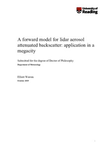 Warren, E. (2020) A forward model for lidar aerosol attenuated backscatter: application in a megacity. PhD thesis, University of Reading. doi: 10.48683/1926.00102272