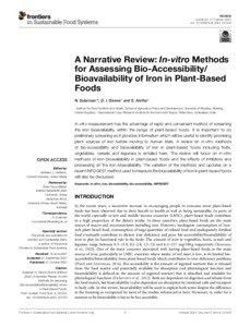 A narrative review: in-vitro methods for assessing bio-accessibility/bioavailability of iron in plant-based foods.
