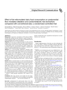 Effect of fat reformulated dairy food consumption on postprandial flow-mediated dilatation and cardiometabolic risk biomarkers compared with conventional dairy: a randomized, controlled trial