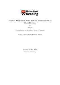 Tao, R. (2021) Textual analysis of news and the cross-section of stock returns. PhD thesis, University of Reading. doi: 10.48683/1926.00102355