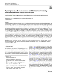 Physical processes of summer extreme rainfall interannual variability in eastern China. part I, observational analysis.