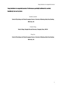 Loutrari, A., Jiang, C. and Liu, F. ORCID: https://orcid.org/0000-0002-7776-0222 (2022) Song imitation in congenital amusia: performance partially facilitated by melody familiarity but not by lyrics. Music Perception, 39 (4). pp. 341-360. ISSN 0730-7829 doi: 10.1525/mp.2022.39.4.341
