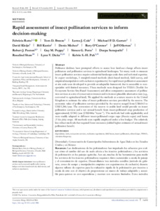 Ratto, F. ORCID: https://orcid.org/0000-0001-8411-4379, Breeze, T. D. ORCID: https://orcid.org/0000-0002-8929-8354, Cole, L. J., Garratt, M. P. D. ORCID: https://orcid.org/0000-0002-0196-6013, Kleijn, D., Kunin, B., Michez, D., O'Connor, R., Ollerton, J., Paxton, R. J., Poppy, G. M., Potts, S. G. ORCID: https://orcid.org/0000-0002-2045-980X, Senapathi, D. ORCID: https://orcid.org/0000-0002-8883-1583, Shaw, R., Dicks, L. V. and Peh, K. S.‐H. (2022) Rapid assessment of insect pollination services to inform decision‐making. Conservation Biology, 36 (4). e13886. ISSN 0888-8892 doi: 10.1111/cobi.13886