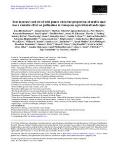 Bees increase seed set of wild plants while the proportion of arable land has a variable effect on pollination in European agricultural landscapes.
