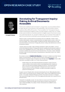 O'Mahoney, J. ORCID: https://orcid.org/0000-0002-6316-1771, (2022) Annotating for transparent inquiry: making archival documents accessible. Open Research Case Studies. Report. University of Reading doi: 10.48683/1926.00102661