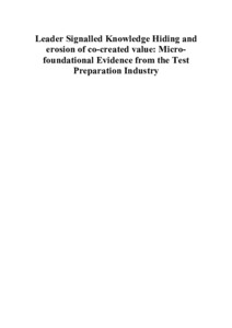Leader signalled knowledge hiding and erosion of co-created value: micro-foundational evidence from the test preparation industry.