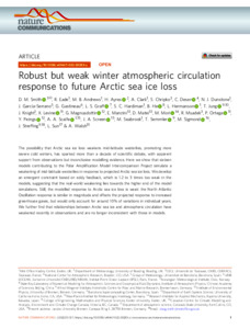 Robust but weak winter atmospheric circulation response to future Arctic sea ice loss.