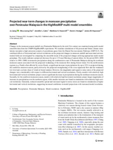 Projected near-term changes in monsoon precipitation over Peninsular Malaysia in the HighResMIP multi-model ensembles.