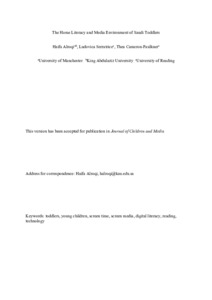 Alroqi, H., Serratrice, L. ORCID: https://orcid.org/0000-0001-5141-6186 and Cameron-Faulkner, T. (2021) The home literacy and media environment of Saudi toddlers. Journal of Children and Media. https://doi.org/10.1080/17482798.2021.1921819. ISSN 1748-2801 doi: 10.1080/17482798.2021.1921819