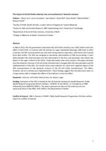 The impact of UK Soft Drinks Industry Levy on manufacturers’ domestic turnover.