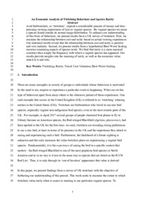 Brock, M., Fraser, I., Law, C. ORCID: https://orcid.org/0000-0003-0686-1998, Mitchell, S. and Roberts, D. L. (2020) An economic analysis of twitching behaviour and species rarity. Journal of Environmental Economics and Policy, 10 (1). pp. 54-73. ISSN 2160-6544 doi: 10.1080/21606544.2020.1782269