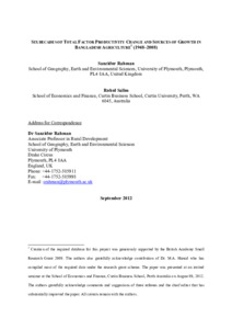 Six decades of total factor productivity change and sources of growth in Bangladesh agriculture (1948-2008).