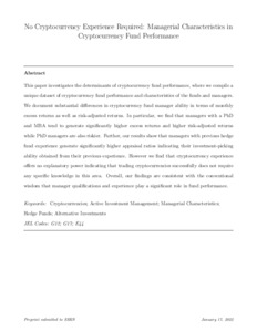 No cryptocurrency experience required: managerial characteristics in cryptocurrency fund performance.
