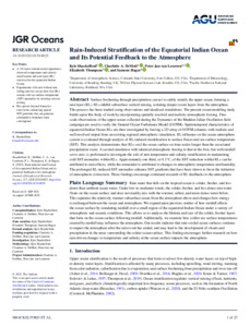 Rain‐induced stratification of the equatorial Indian Ocean and its potential feedback to the atmosphere.