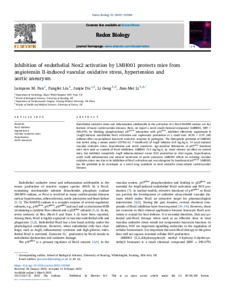 Inhibition of endothelial Nox2 activation by LMH001 protects mice from angiotensin II-induced vascular oxidative stress, hypertension and aortic aneurysm.