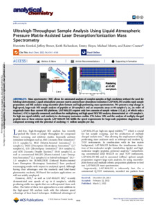 Ultrahigh-throughput sample analysis using liquid atmospheric pressure matrix-assisted laser desorption/ionization mass spectrometry.