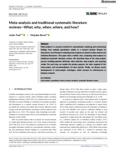 Meta‐analysis and traditional systematic literature reviews—What, why, when, where, and how?