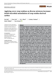 Applying cover crop residues as diverse mixtures increases initial microbial assimilation of crop residue-derived carbon