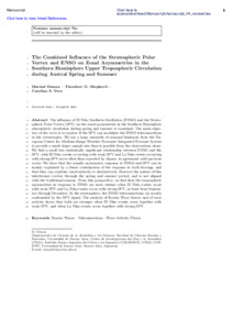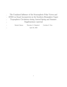 The combined influence of the stratospheric polar vortex and ENSO on zonal asymmetries in the Southern Hemisphere upper tropospheric circulation during austral spring and summer.