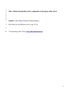 Urbanization transforms environments in ways that alter biological evolution. We examined whether urban environmental change drives parallel evolution by sampling 110,019 white clover plants from 6169 populations in 160 cities globally. Plants were assayed for a Mendelian antiherbivore defense that also affects tolerance to abiotic stressors. Urban-rural gradients were associated with the evolution of clines in defense in 47% of cities throughout the world. Variation in the strength of clines was explained by environmental changes in drought stress and vegetation cover that varied among cities. Sequencing 2074 genomes from 26 cities revealed that the evolution of urban-rural clines was best explained by adaptive evolution, but the degree of parallel adaptation varied among cities. Our results demonstrate that urbanization leads to adaptation at a global scale.