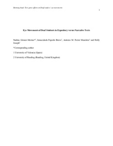 Eye movements of deaf students in expository versus narrative texts.