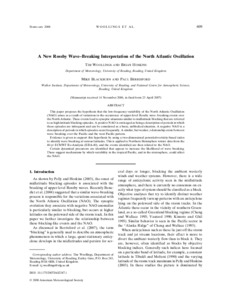 Woollings, T. J., Hoskins, B. J., Blackburn, M. and Berrisford, P. (2008) A new Rossby Wave-breaking interpretation of the North Atlantic Oscillation. Journal of the Atmospheric Sciences, 65 (2). pp. 609-626. ISSN 1520-0469 doi: 10.1175/2007JAS2347.1