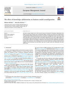 Belitski, M. and Mariani, M. ORCID: https://orcid.org/0000-0002-7916-2576 (2023) The effect of knowledge collaboration on business model reconfiguration. European Management Journal, 41 (2). pp. 223-235. ISSN 0263-2373 doi: 10.1016/j.emj.2022.02.006