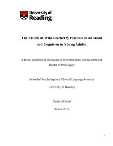 Khalid, S. (2020) The Effects of Wild Blueberry Flavonoids on Mood and Cognition in Young Adults. PhD thesis, University of Reading. doi: 10.48683/1926.00104395