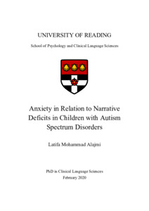 Alajmi, L. (2020) Anxiety in Relation to Narrative Deficits in Children with Autism Spectrum Disorders. PhD thesis, University of Reading. doi: 10.48683/1926.00104398