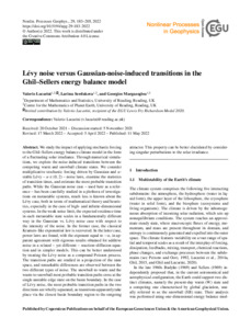 Lévy-noise versus Gaussian-noise-induced transitions in the Ghil-Sellers energy balance model.