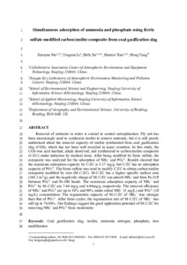 Simultaneous adsorption of ammonia and phosphate using ferric sulfate modified carbon/zeolite composite from coal gasification slag