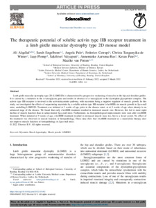 The therapeutic potential of soluble activin type IIB receptor treatment in a limb girdle muscular dystrophy type 2D mouse model.