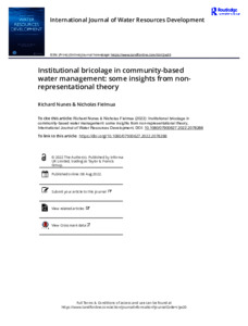 Institutional bricolage in community-based water management: some insights from non-representational theory.