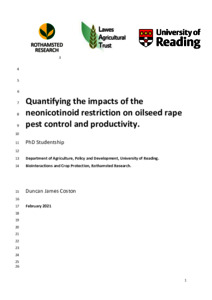Coston, D. J. (2021) Quantifying the impacts of the neonicotinoid restriction on oilseed rape pest control and productivity. PhD thesis, University of Reading. doi: 10.48683/1926.00104889