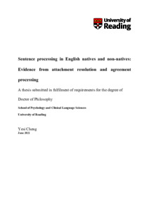 Cheng, Y. (2021) Sentence processing in English natives and non-natives: evidence from attachment resolution and agreement processing. PhD thesis, University of Reading. doi: 10.48683/1926.00104897
