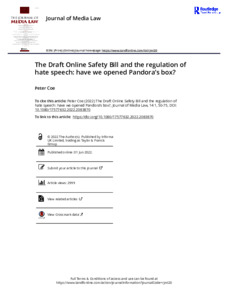 The Draft Online Safety Bill and the regulation of hate speech: have we opened Pandora’s Box?