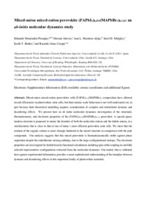 23. Menéndez-Proupin E, Grover S, Montero-Alejo A L, Midgley S D, Butler K T, and Grau-Crespo R, Data supporting Mixed-anion mixed-cation perovskite (FAPbI3)0.875(MAPbBr3)0.125: an ab initio molecular dynamics study, Repositorio de datos de investigación de la Universidad de Chile, 2021, https://doi.org/10.34691/FK2/PXNHBG