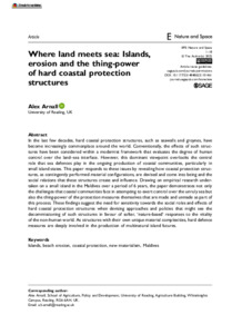 Arnall, A. ORCID: https://orcid.org/0000-0001-6218-5926 (2022) Where land meets sea: islands, erosion and the thing-power of hard coastal protection structures. Environment and Planning E: Nature and Space. ISSN 2514-8494 doi: 10.1177/25148486221101461