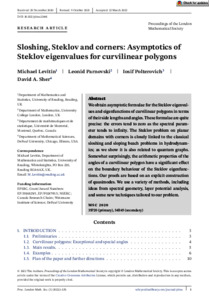 Levitin, M. ORCID: https://orcid.org/0000-0003-0020-3265, Parnovski, L., Polterovich, I. and Sher, D. A. (2022) Sloshing, Steklov and corners: asymptotics of Steklov eigenvalues for curvilinear polygons. Proceedings of the London Mathematical Society, 125 (3). pp. 359-487. ISSN 1460-244X doi: 10.1112/plms.12461
