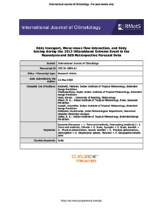 Eddy transport, wave-mean flow interaction, and Eddy forcing during the 2013 Uttarakhand extreme event in the reanalysis and S2S retrospective forecast data.