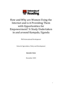 Caine, A. ORCID: https://orcid.org/0000-0003-2721-4650 (2021) How and Why are Women Using the Internet and is it Providing Them with Opportunities for Empowerment? A Study Undertaken in and around Kampala, Uganda. PhD thesis, University of Reading. doi: 10.48683/1926.00105082