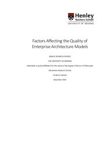 Spence, C. (2021) Factors Affecting the Quality of Enterprise Architecture Models. PhD thesis, University of Reading. doi: 10.48683/1926.00105086