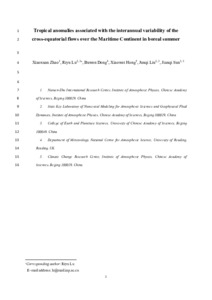 | Additional Information | Zhao, X., R. Lu, B. Dong,X. Hong, J. Liu, J. Sun, 2022: Tropical anomalies associated with the interannual variability of the cross-equatorial flows over the Maritime Continent in boreal summer. J. of Climate. https://doi.org/10.1175/JCLI-D-21- 0641.1 |