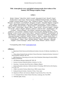 Atmospheric waves and global seismoacoustic observations of the January 2022 Hunga eruption, Tonga.