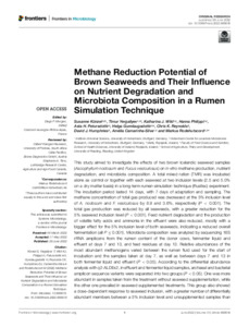 Methane reduction potential of brown seaweeds and their influence on nutrient degradation and microbiota composition in a rumen simulation technique.