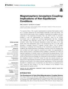 Magnetosphere-ionosphere coupling: implications of nonequilibrium conditions.