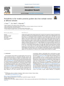 Periodicities in fair weather potential gradient data from multiple stations at different latitudes.
