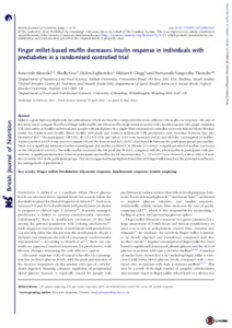 Almaski, A., Coe, S., Lightowler, H., Clegg, M. E. and Thondre, P. S. (2023) Finger millet based-muffin decreases insulin response in individuals with prediabetes in a randomised controlled trial. British Journal of Nutrition, 129 (4). pp. 650-659. ISSN 0007-1145 doi: 10.1017/S0007114522001623