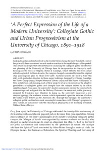 'A perfect expression of the life of a modern university': collegiate gothic and urban progressivism at the University of Chicago, 1890–1918.