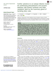 Further solutions to an isotope dilution model for partitioning phenylalanine and tyrosine between milk protein synthesis and other metabolic fates by the mammary gland of lactating dairy cows.
